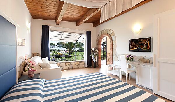 - Overnight stay in the Oasi Suite with a double bed with a canopy, bathroom with a double hot tub, private garden with a private hot tub, hammock, and barbecue.