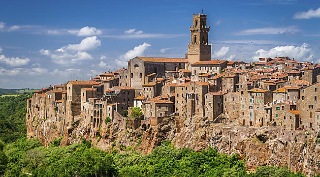 Perched on a cliff of local stone known as “tufo”, Pitigliano is known for its Jewish ghetto, for its houses carved into the rock and its timeless atmosphere. Walking through its narrow alleyways, you breath the history of the millenia past discovering the Orsini Palace, the Medici Aqueduct, the Synagogue; each corner of its Old Town tells a story you won’t soon forget.