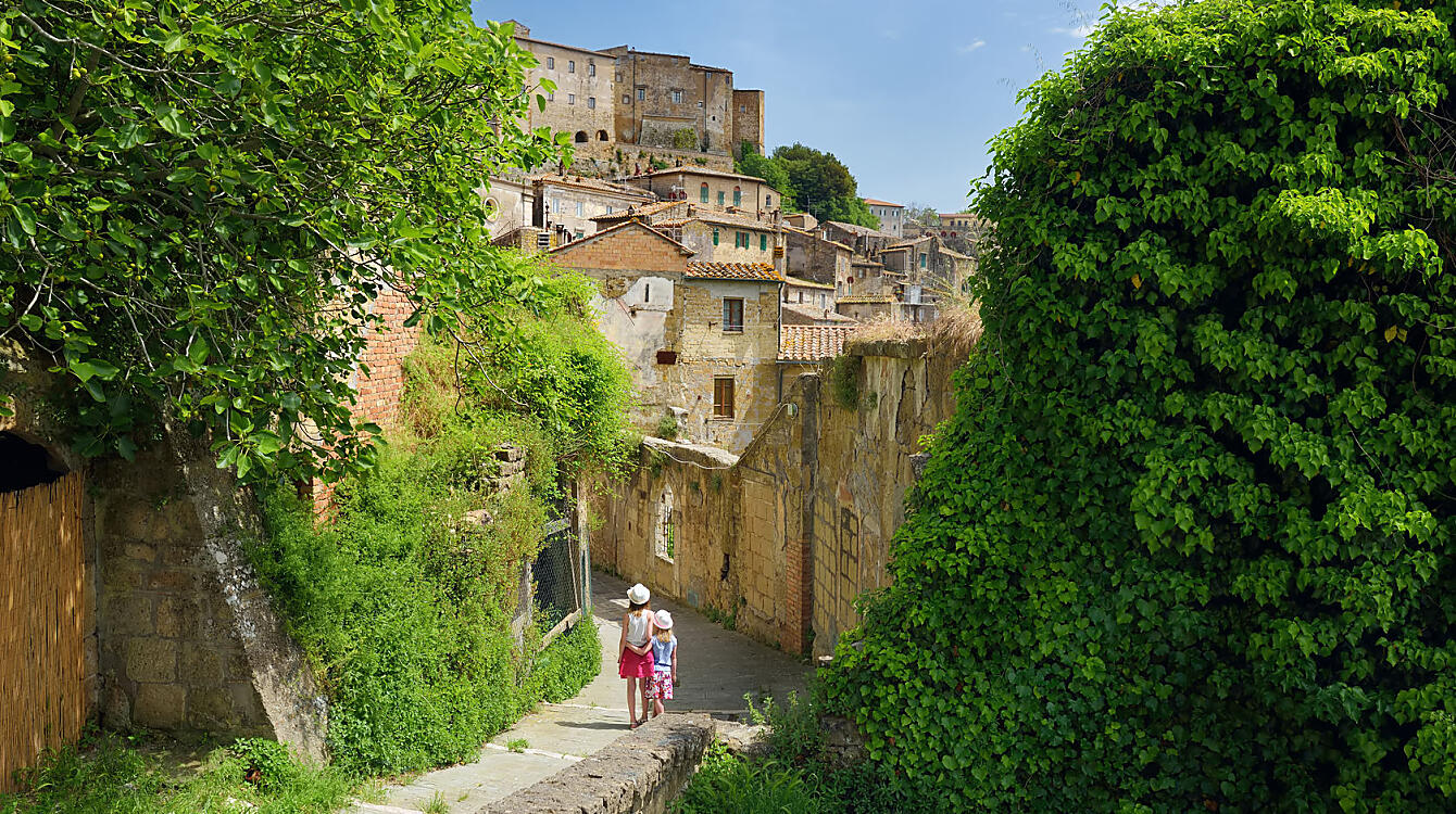 Sorano e Sovana sono borghi unici, dove la pietra tufacea è protagonista. Le case, le strade, persino le scale sembrano scolpite nella roccia. Qui si respira un’atmosfera sospesa, intima, quasi magica. Perfette per chi ama camminare senza meta, scoprendo piazzette nascoste, botteghe artigiane e viste mozzafiato.