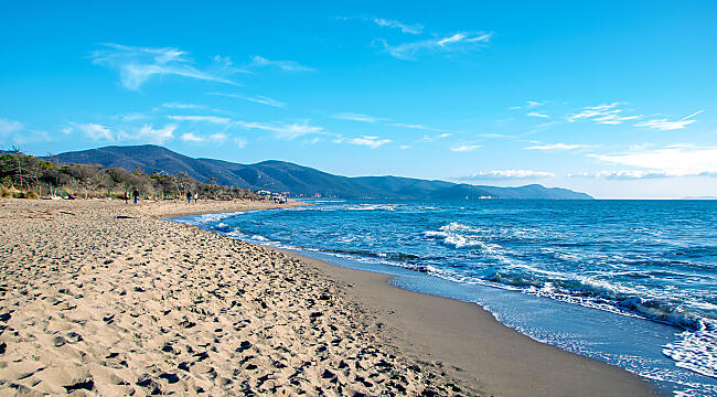 Marina di Alberese, all’interno del Parco Naturale della Maremma, è una lunga spiaggia incontaminata dove si arriva attraverso una strada sterrata o con le navette del parco. Qui la sabbia è fine, il mare limpido, e ti accompagnano solo il vento, il profumo della macchia mediterranea e il suono delle onde. Non ci sono stabilimenti: è il posto perfetto per chi cerca una connessione autentica con la natura.