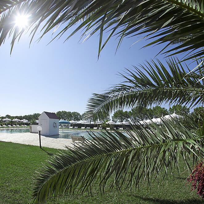 - Utilizzo delle piscine in pietra naturale, ombrelloni, sdraio e teli bagno